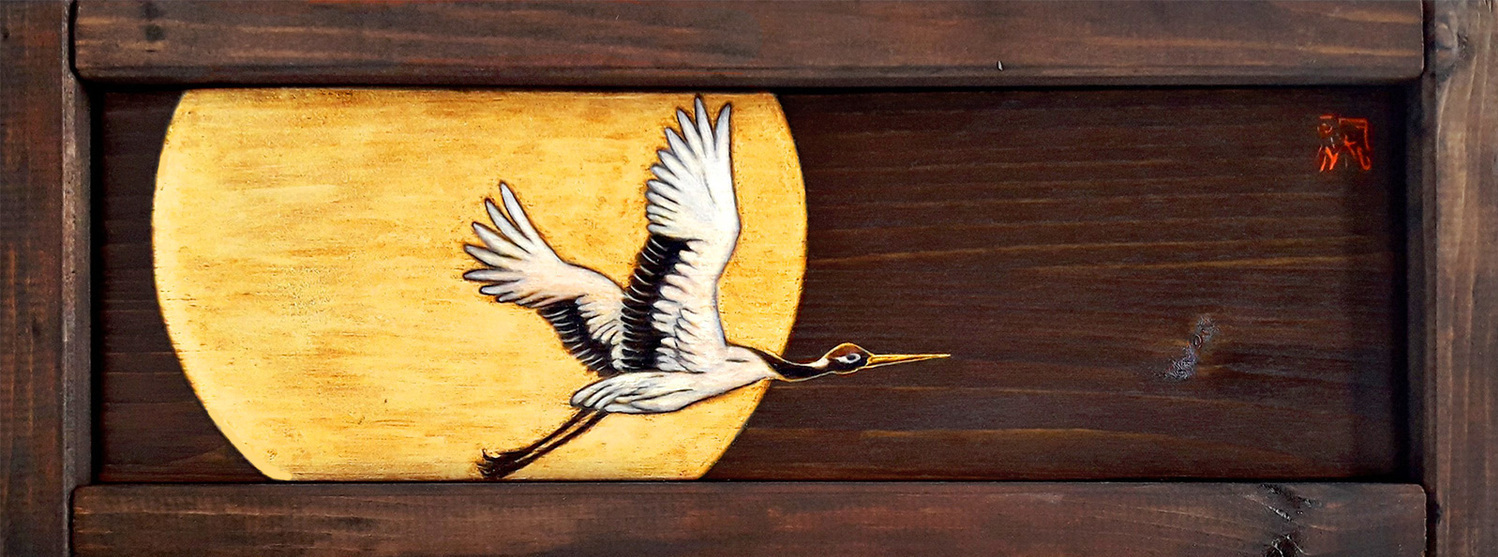 (40x40cm) - Tsuru: volo nell'alba dorata